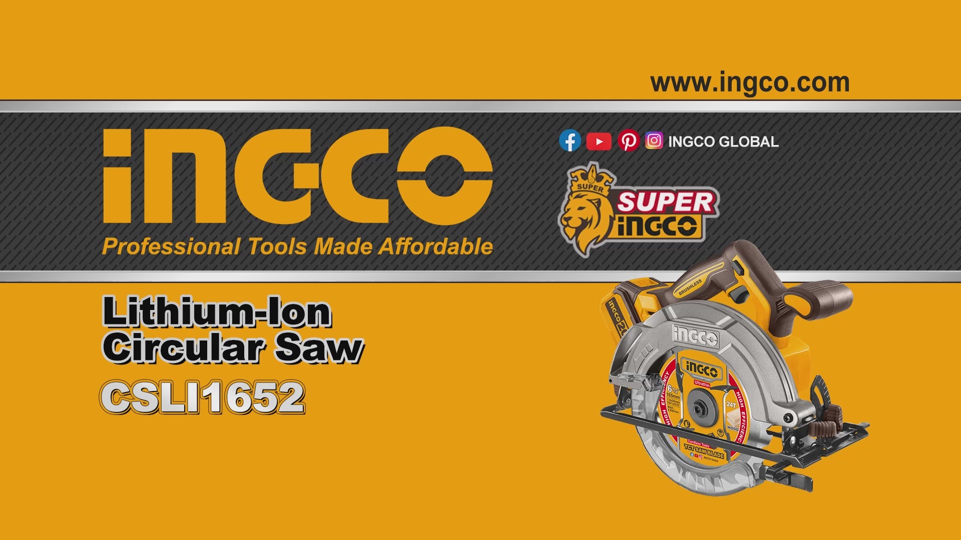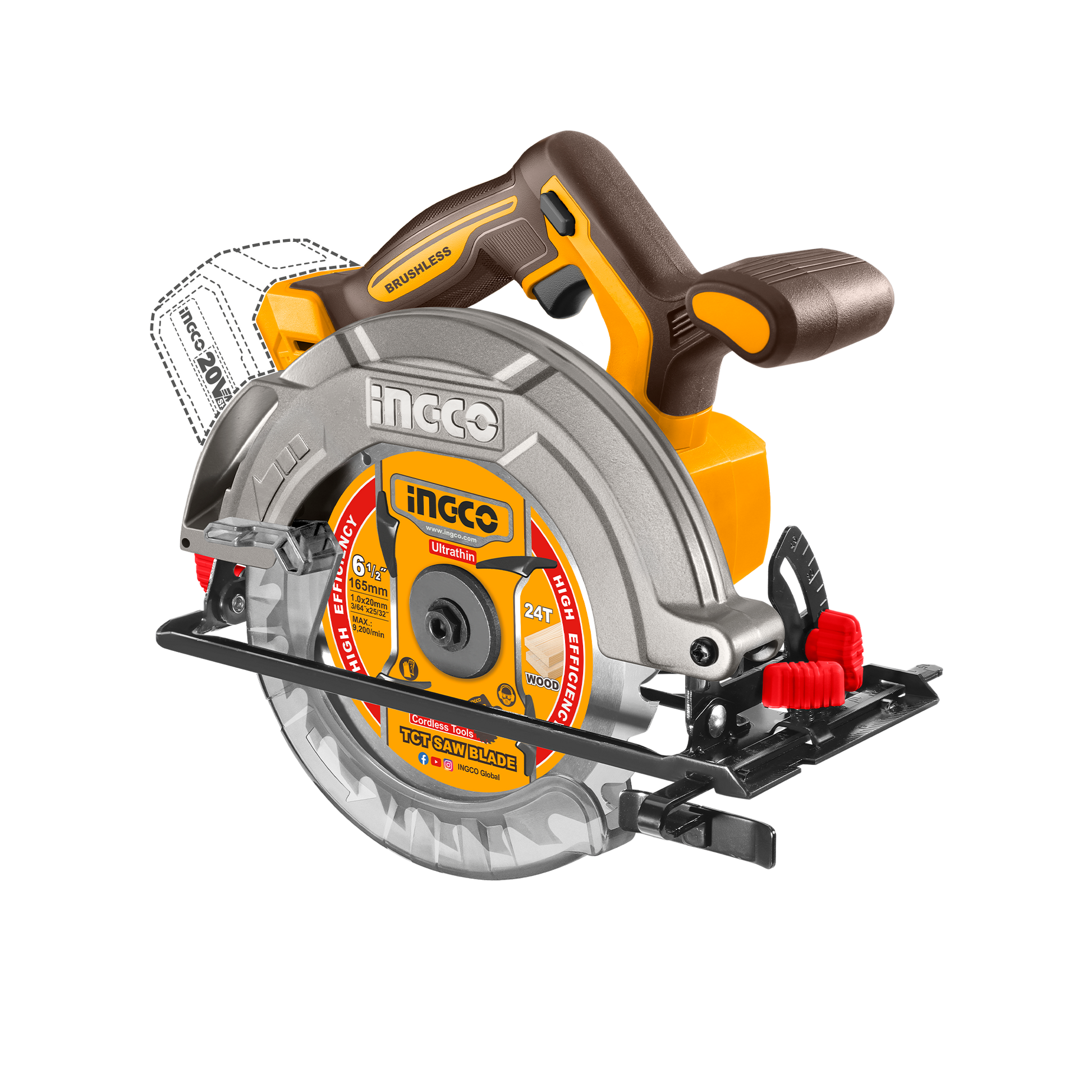 INGCO 20V Brushless Cordless Circular Saw 165mm (Body Only)